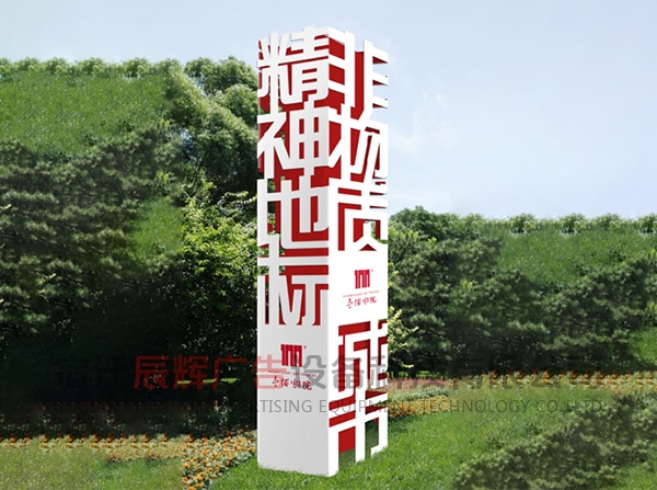 精神堡壘具備一定的體量和高度,能夠獨立表達企業(yè)形象的大型單體標識。精神堡壘特指為商業(yè)體、主題園區(qū)、交通站點等公共場所,樹立醒目且符合場地氣質(zhì)的藝術構筑物。精神堡壘的擺放的位置也尤其重要,人都有視覺盲點,精神堡壘給人一種清新和諧的感覺。